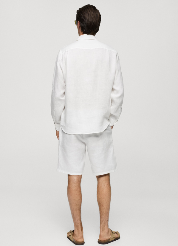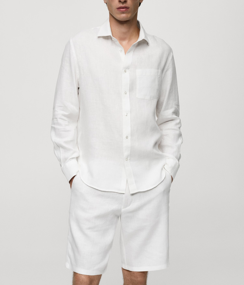 เสื้อเชิ้ตผ้าลินินฝรั่งเศสแท้ 100% สำหรับผู้ชาย แขนยาว สไตล์ลำลอง ปกคอพับ แบบคลาสสิก เรโทร แฟชั่น สีพื้น