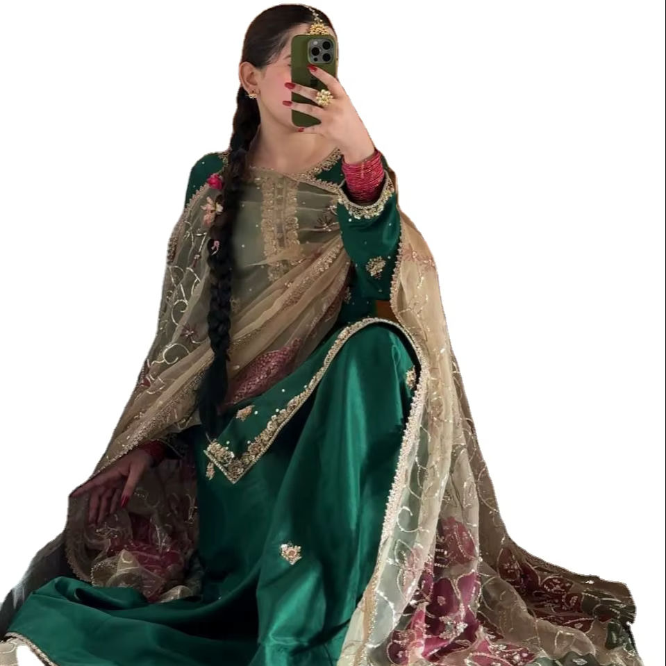 ผ้าไหมจอร์เจตต์แท้ 100% ชุดสัลวาร์ คามีซปักลายแฟชั่นน้ำหนักเบาสำหรับงานอีดและรอมฎอน ขนาดสั่งทำได้