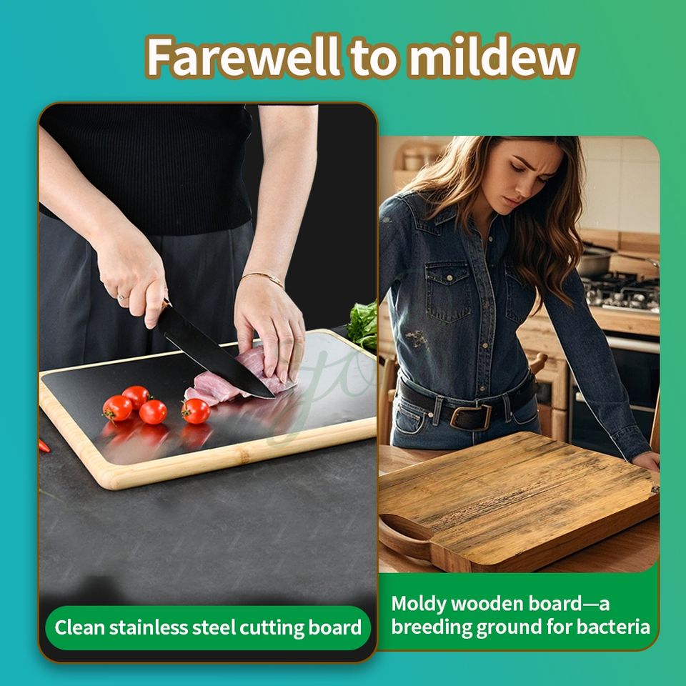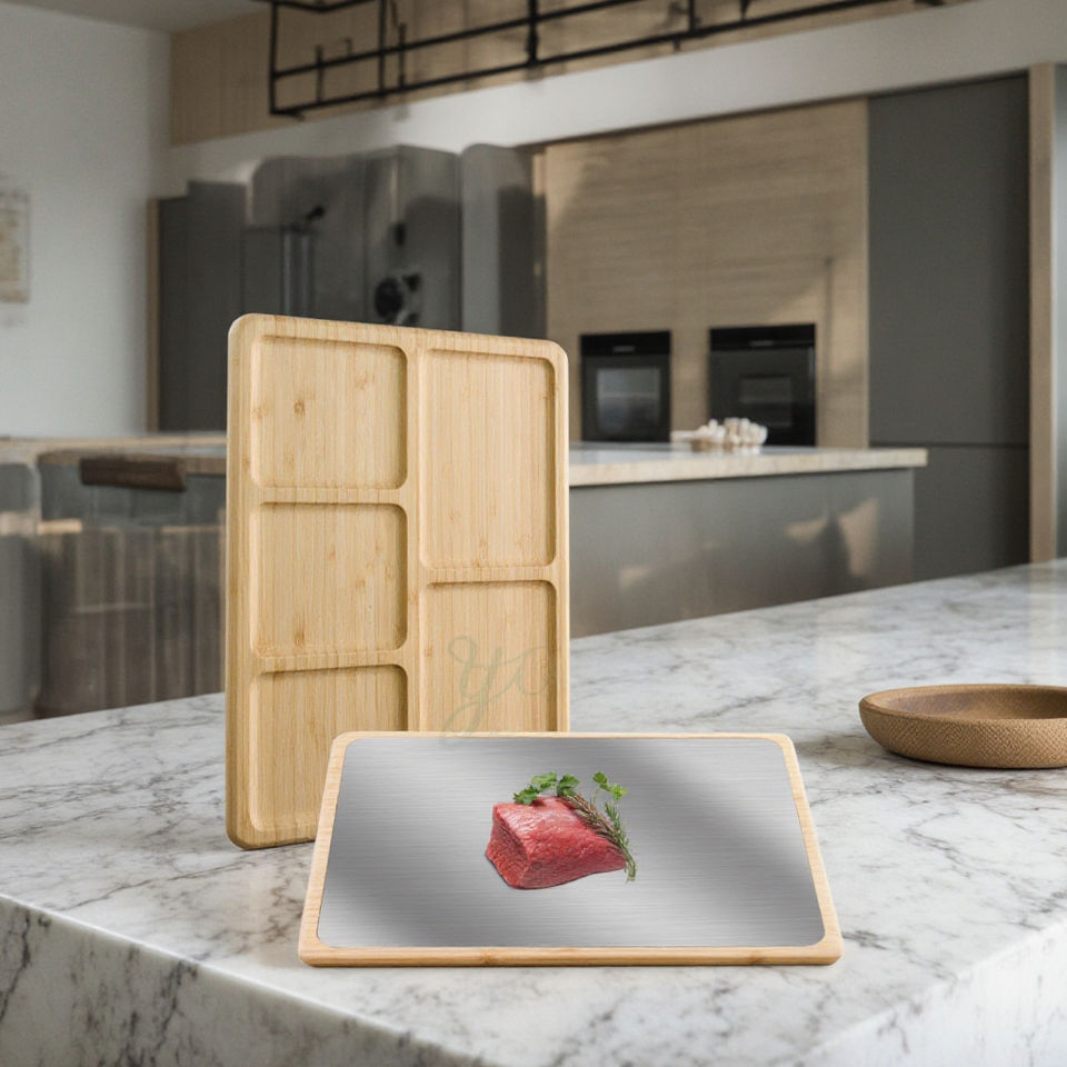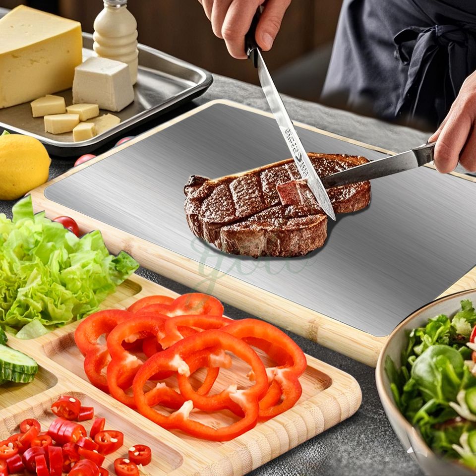 เขียงไทเทเนียมพร้อมถาดแบ่งช่องสำหรับสับเนื้อไม้ไผ่สองด้านสำหรับห้องครัวขนาดใหญ่พิเศษ100