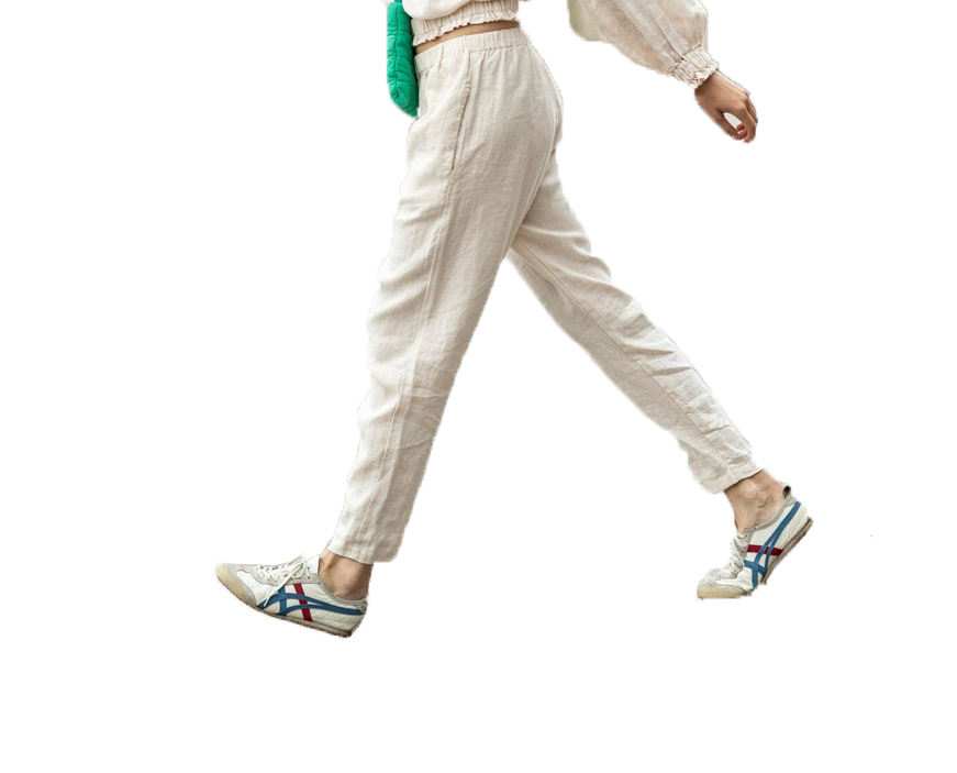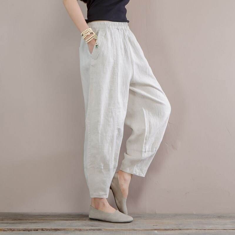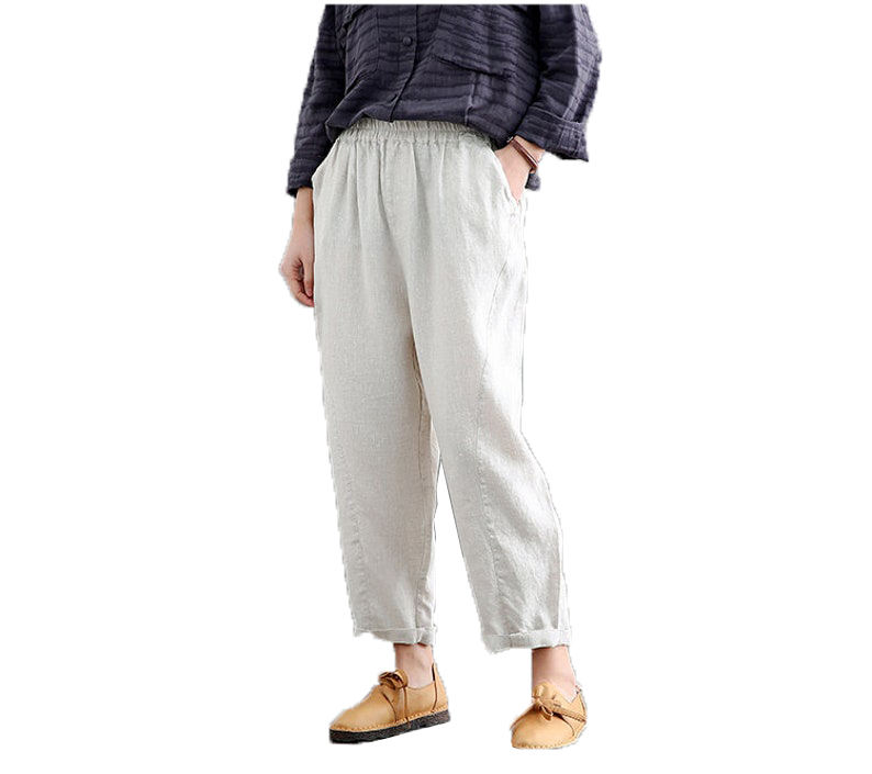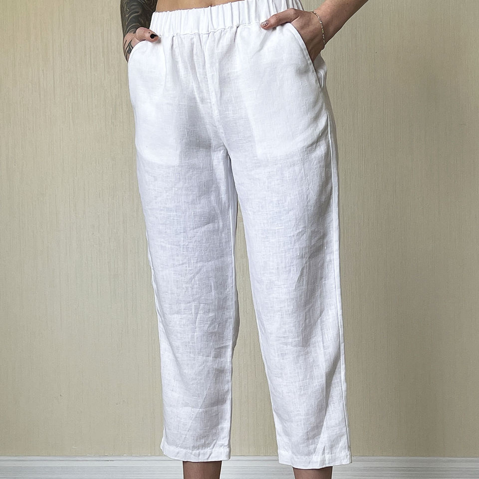 ชื่อผลิตภัณฑ์:Zedaar กางเกงผ้าลินินสีขาวย้อมสีทึบ