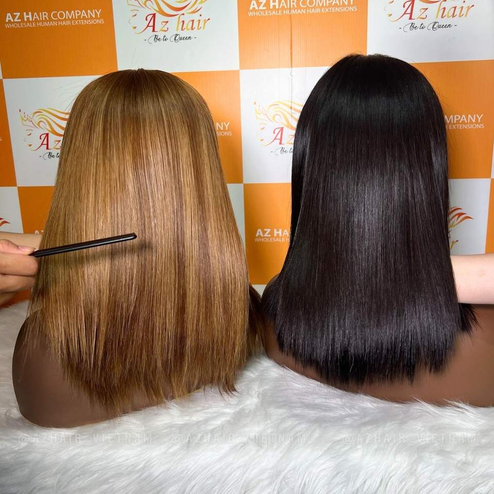 100% Pure Raw Vietnamese Human Hair Extensions Blunt Cut Short Wig Straight Style Shedding Free and Tangle-Free