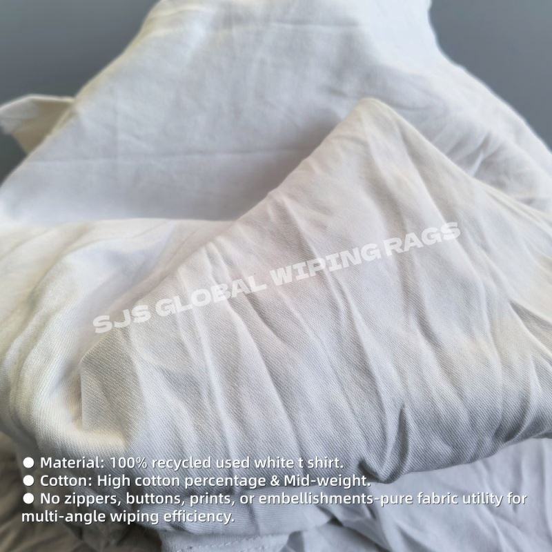 ผ้าเช็ดทำความสะอาดทำจากผ้าฝ้ายสีขาวบริสุทธิ์ 100% ผ้าเช็ดทำความสะอาดอุตสาหกรรม ผ้าเช็ดทำความสะอาดเสื้อยืดรีไซเคิล ผ้าฝ้ายซึมซับได้ดีสำหรับทำความสะอาด