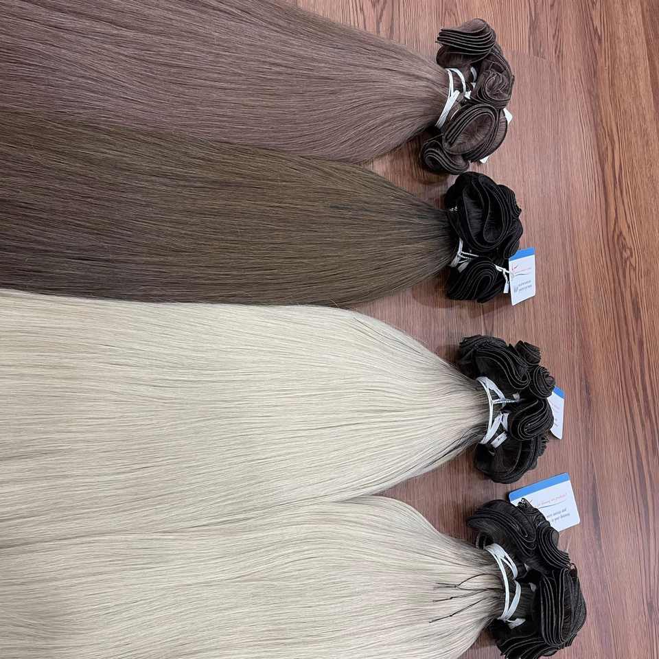 วิกผมมนุษย์แบบผูกด้วยมือแบบไล่สีผม100%
