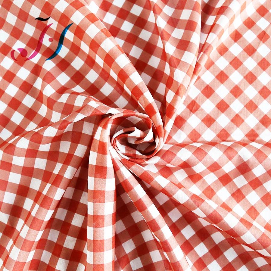 100% Ramie Cotton Breathable Digital Printed Check Design Fabric Woven for Girls' Dresses Shirts Home Textiles Sofas