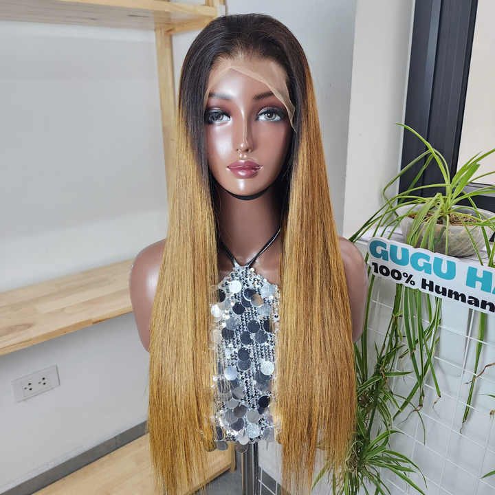 วิกผมแท้เวียดนาม 100% แบบตรงยาว 30 นิ้ว สีน้ำตาลออมเบร ลอนลึก แบบ Double Drawn ยาวพิเศษ โปร่งใส จากผู้ขายโดยตรง