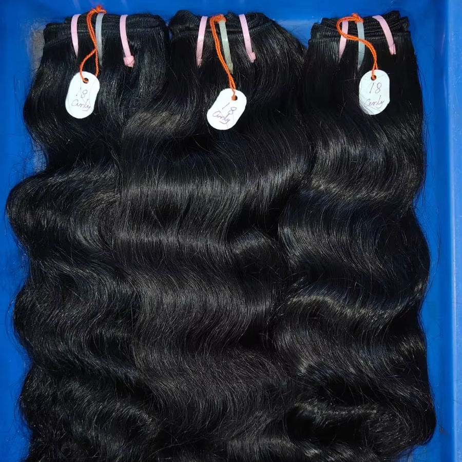 เครื่องม้วนผมมนุษย์แบบไม่ผ่านกระบวนการถักเปียแบบไม่ผ่านกระบวนการผมแบบเกลียวสองชั้นขอบแบบ100% อินเดีย