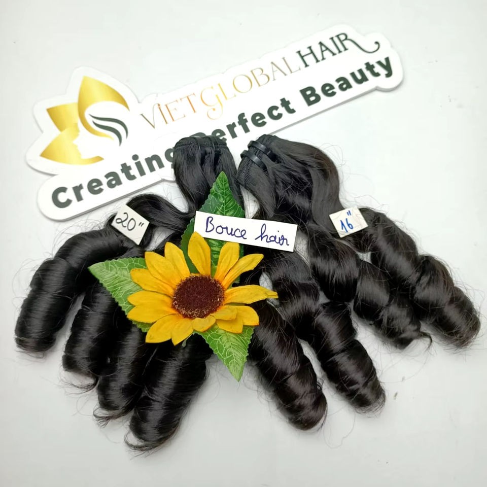 ผมต่อของมนุษย์สีธรรมชาติแบบไม่ผ่านกระบวนการ100% กระจุกตัวเป็นลอนธรรมชาติแบบเด้ง