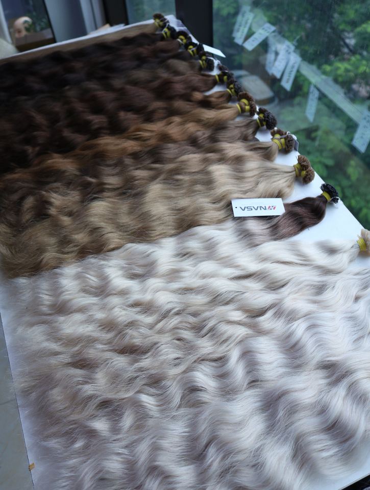 ผมต่อแบบหยักศกธรรมชาติบริสุทธิ์แบบชาวเวียดนามสำหรับต่อปลายแบนทำจากผ้าสองชั้นผมมนุษย์คุณภาพสูงทุกสี100%