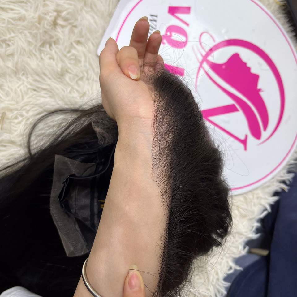 วิกผมคนแท้แบบดิบ100% ผมตรงยาวเวียดนามวิกต่อผมสีดำลูกไม้เนื้อละเอียดลึกฐาน HD