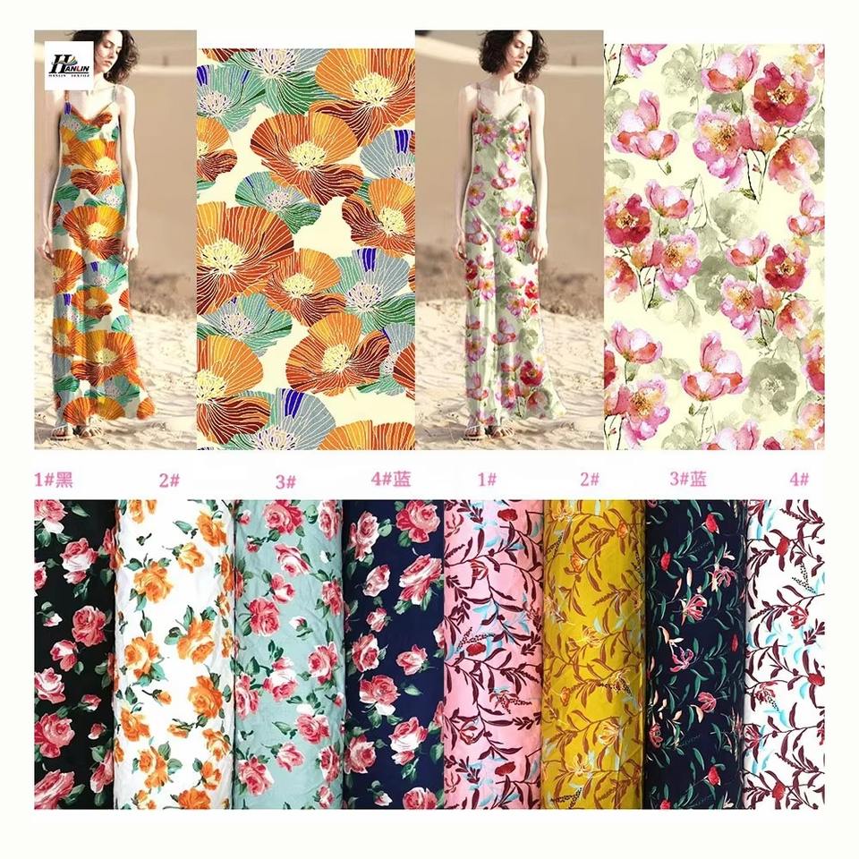ชุดเดรสผ้าเรยอน100% พิมพ์ลายดอกไม้แฟชั่นดิจิตอล