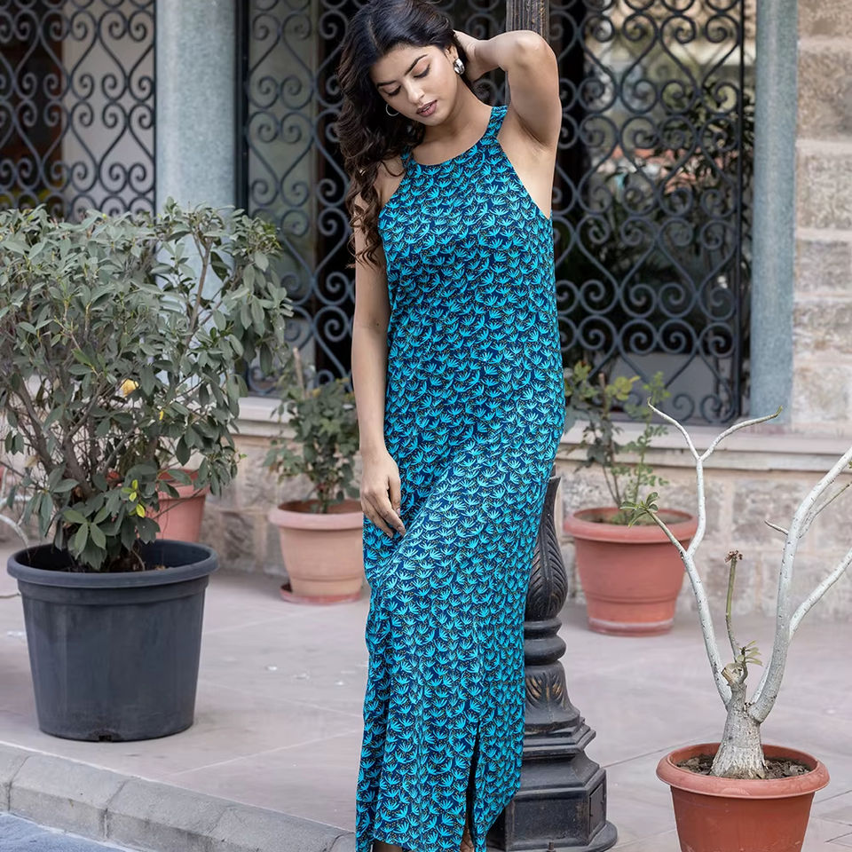 ชุดเดรสเรยอน100% ฤดูร้อนเดรสลำลองสวมใส่ได้ทุกวันระบายอากาศได้ดีพิมพ์ลายดอกไม้ลวดลายต่างๆทำด้วยมือ