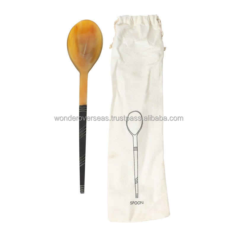 100% ช้อนฮอร์นแท้ที่ให้บริการช้อนฮอร์นแบบดั้งเดิมเครื่องใช้บนโต๊ะอาหารสำหรับร้านอาหารอุปกรณ์รับประทานอาหารจากธรรมชาติรูปวัวและเขาควาย