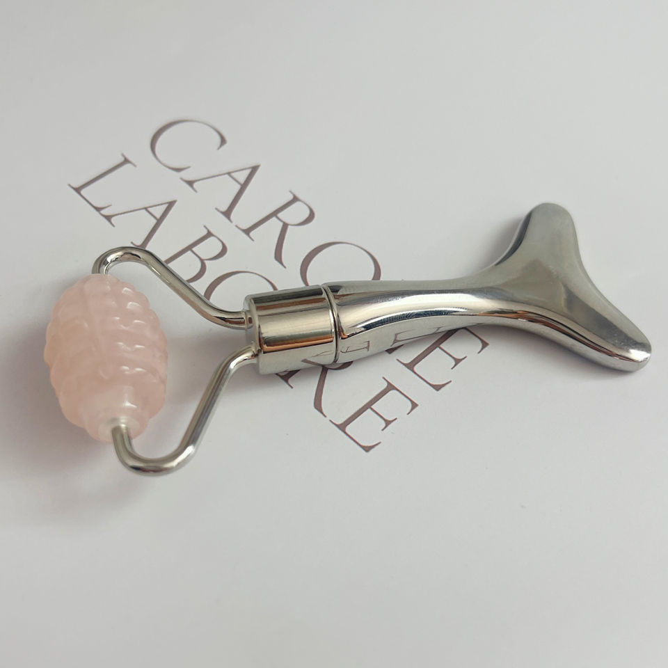 โรสควอทซ์สำหรับนวดหน้าลูกกลิ้งหินหยกอัลลอยผสมสังกะสีสำหรับนวดหน้าขนาดเล็ก100% ทำจากหินควอตซ์ธรรมชาติแท้สำหรับนวดหน้า