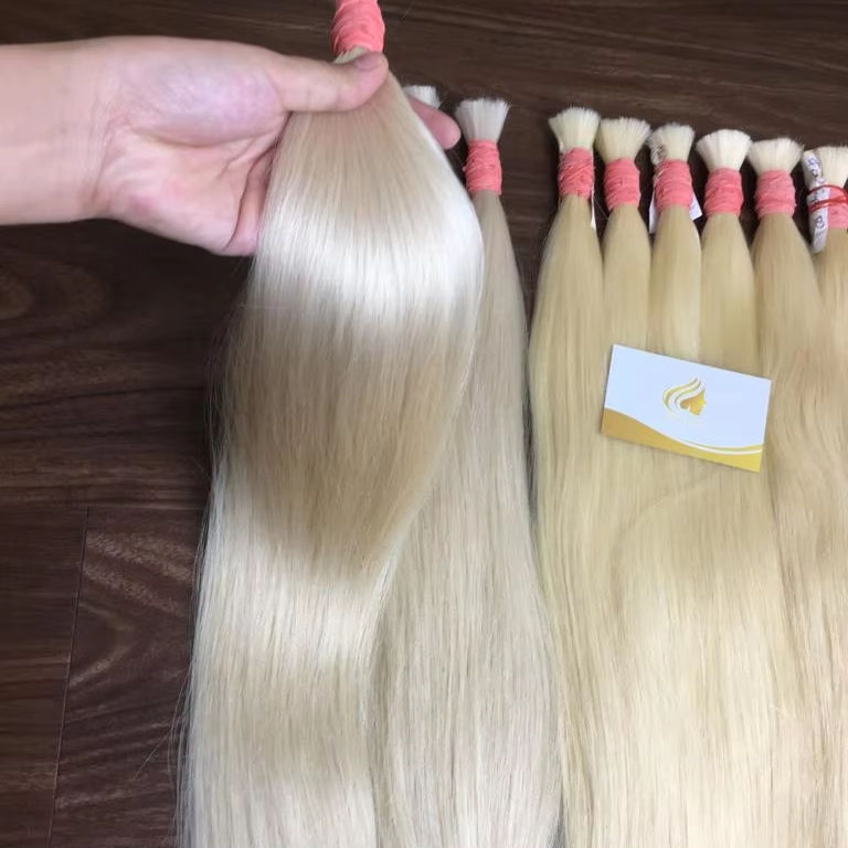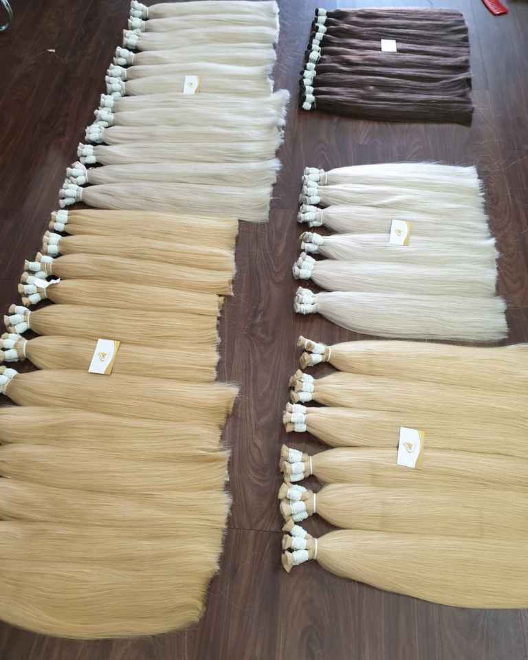 ผมต่อเวอร์จินแท้ 100% จากเวียดนาม แบบเรมี่ จัดเรียงเกล็ดผม ทรงลอน สีอ่อน ขนาด 8-32 นิ้ว น้ำหนัก 100 กรัม แบบเป็นมัด