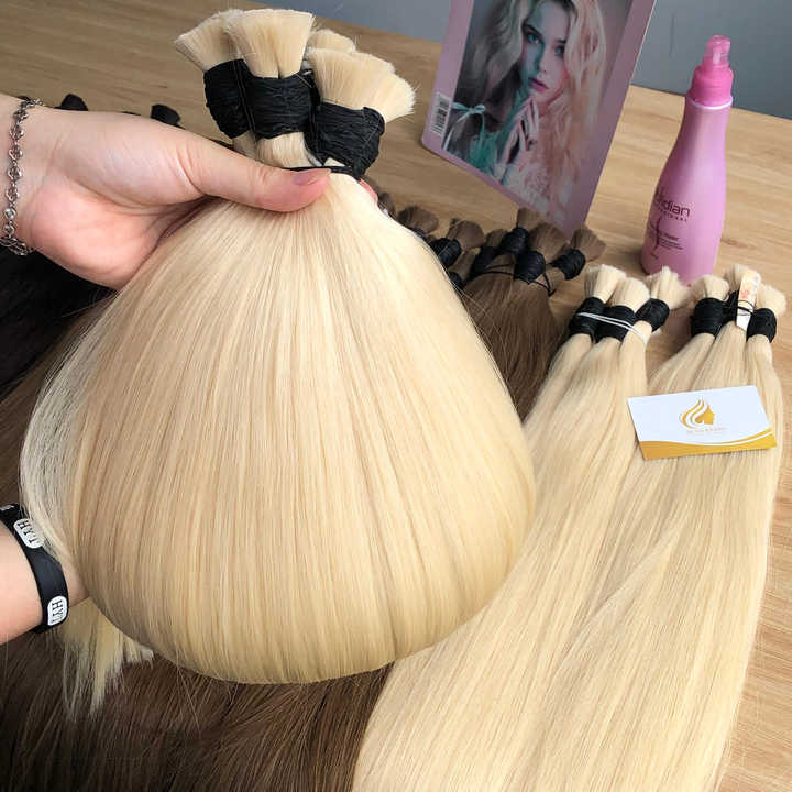 ผมต่อเวอร์จินแท้ 100% จากเวียดนาม แบบเรมี่ จัดเรียงเกล็ดผม ทรงลอน สีอ่อน ขนาด 8-32 นิ้ว น้ำหนัก 100 กรัม แบบเป็นมัด