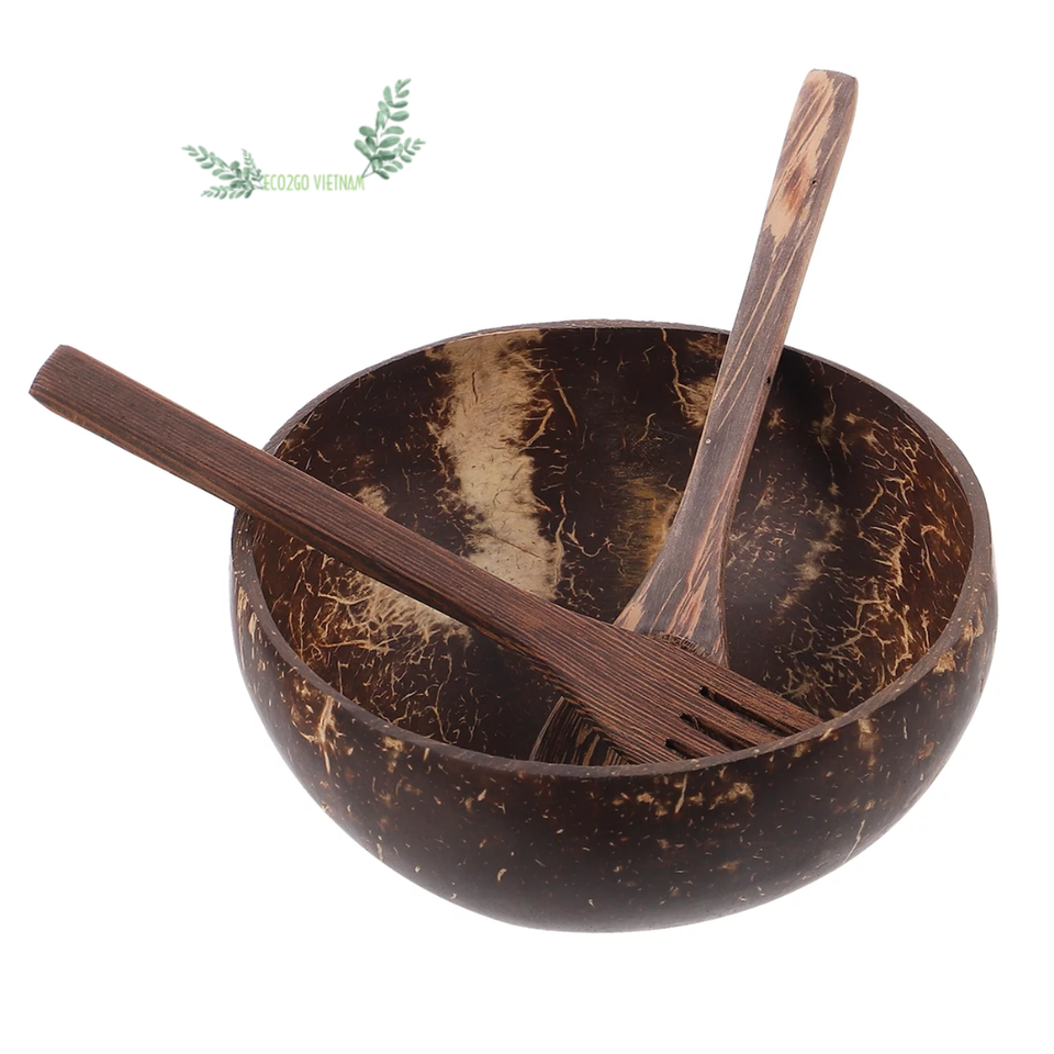 ชามกะลามะพร้าวขนาดจัมโบ้100% ใช้ซ้ำได้ใช้ซ้ำได้สำหรับใส่สลัดอาหารทำจากเวียดนาม Eco2go