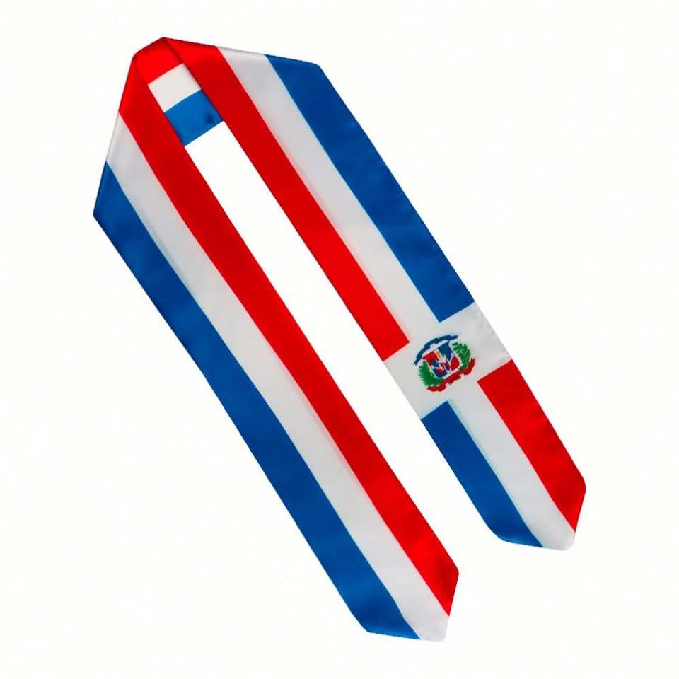 100% Satin Polyester Dominican Republic International Study Abroad Adult Graduation Scarf Sash