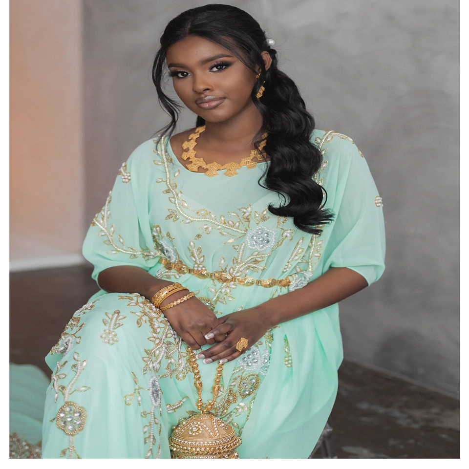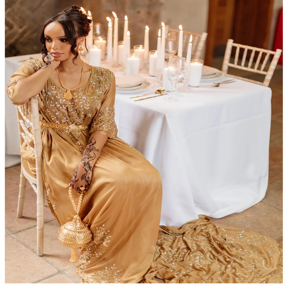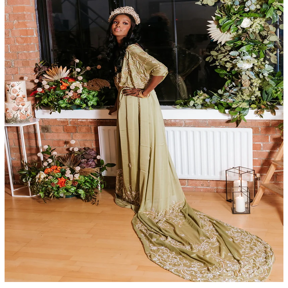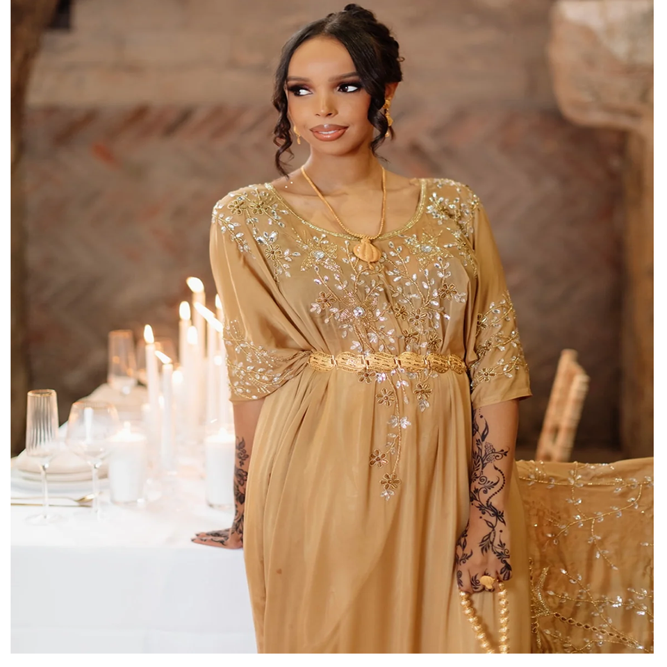 ชุดเจ้าสาว100% ผ้าไหม & ผ้าฝ้ายสุดหรูพิมพ์ลายด้วยลูกปัดชุดเดรสขนาดเดียวใส่ได้พอดีกับทุกขนาด