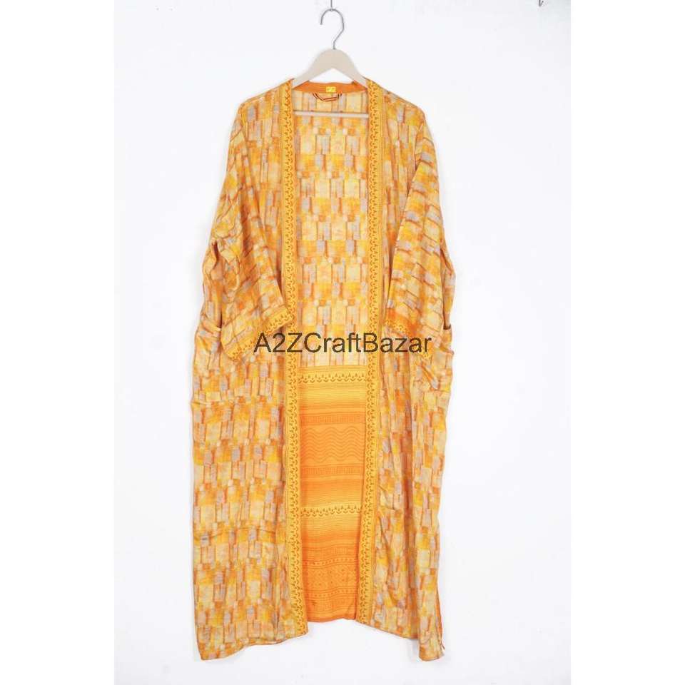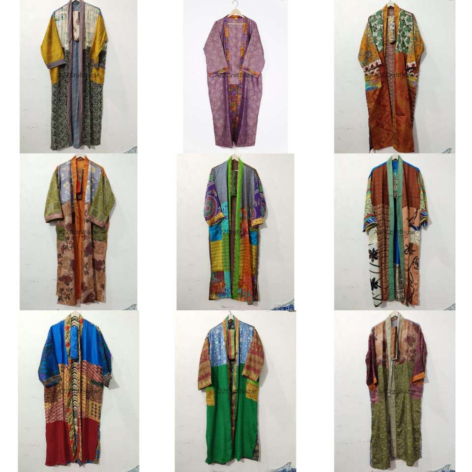 ชุดคลุมอาบน้ำผ้าไหมแท้ 100% ดีไซน์หรูหรา คอวี ปิดด้วยเชือกผูก แขนยาว สไตล์โบฮีเมียน ซารี คิโมโน ชุดนอน ชุดคลุมชายหาดสำหรับผู้หญิง