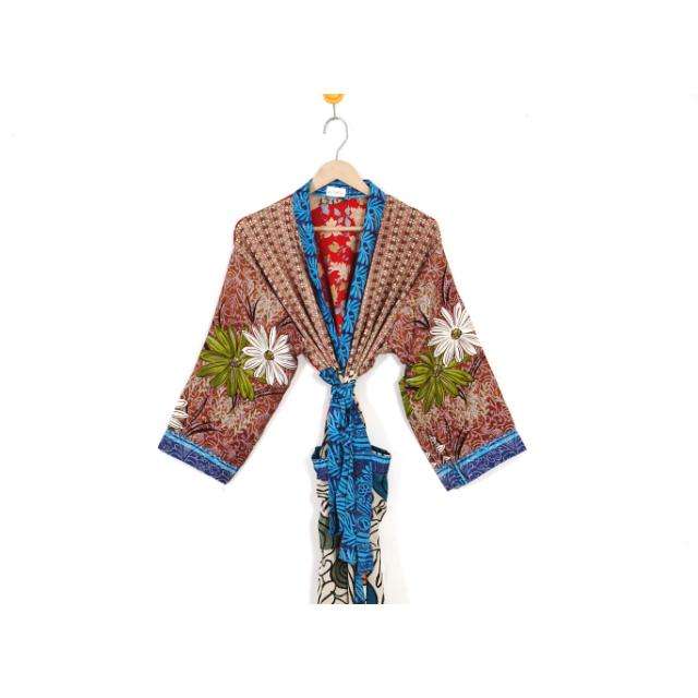 ชุดกิโมโนผ้าไหมแท้ 100% ลายดอกไม้ งานแฮนด์เมด พิมพ์บล็อก สำหรับผู้หญิง ชุดนอนฤดูร้อน ฤดูใบไม้ผลิ ของขวัญ