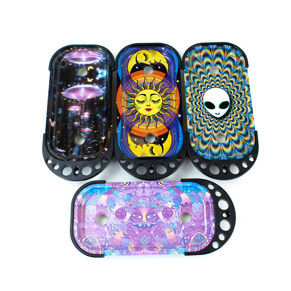 ถาดมวนบุหรี่แบบกำหนดเอง ลายเอเลี่ยน 100+ แบบ ถาดลายตาสีชมพู ถาดโลหะ ลายเทวดา ลายปีศาจ