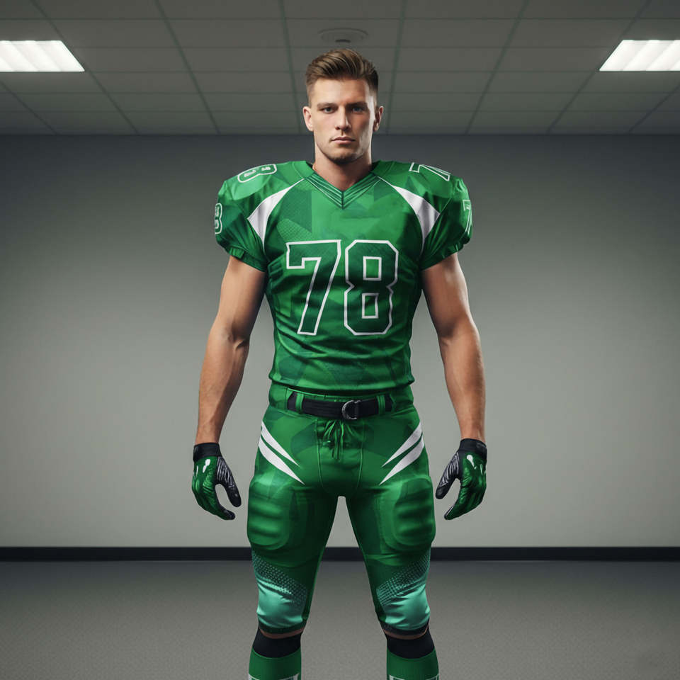 ชุดยูนิฟอร์มอเมริกันฟุตบอลผู้ชาย แขนสั้น ระบายอากาศ แห้งเร็ว ต้านเชื้อแบคทีเรีย ไซส์ใหญ่ ดีไซน์ทันสมัย 100% พร้อมลายพิมพ์แบบซับลิเมชั่น