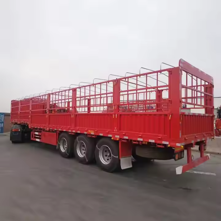 รถพ่วงบรรทุกปศุสัตว์ 100 ตัน รถพ่วงบรรทุกสัตว์ 3 เพลา รถบรรทุกขนส่งสินค้า ขนส่งอ้อย รถพ่วงกึ่งพ่วงแบบมีรั้ว