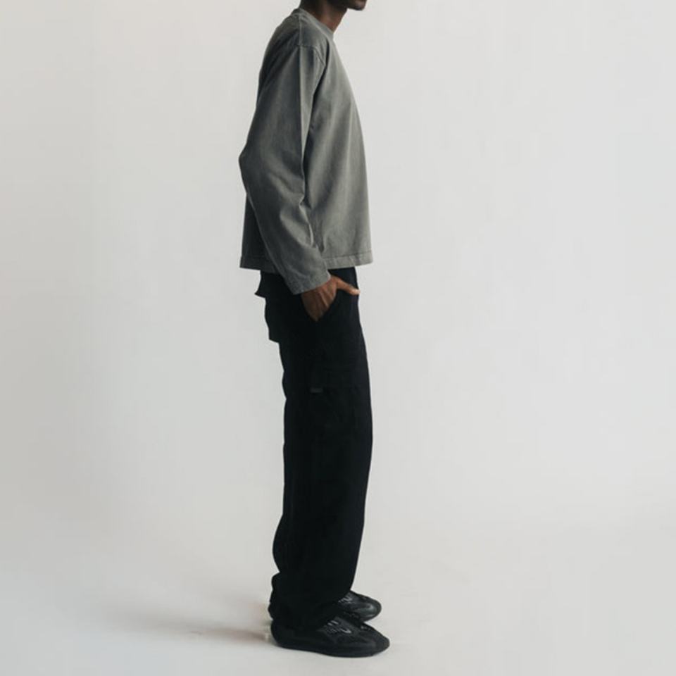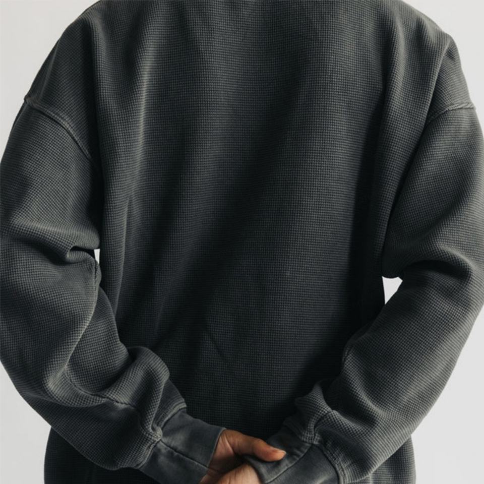 เสื้อยืดคอกลมแขนยาวผ้าฝ้ายแท้ 100% สำหรับผู้ชาย แบบสองชั้น แห้งเร็ว ระบายอากาศได้ดี สีเทาล้วน