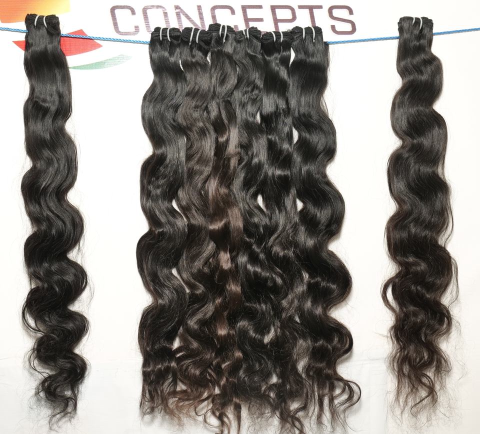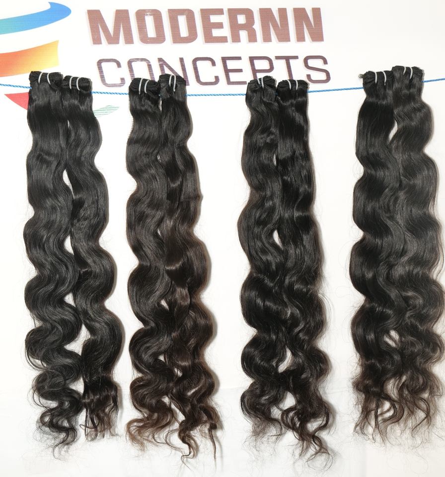 100% Unprocessed Natural Virgin Black Raw Bodywave Style Indian Temple Wavy Curly Pre-Bonded Wigs Extensions