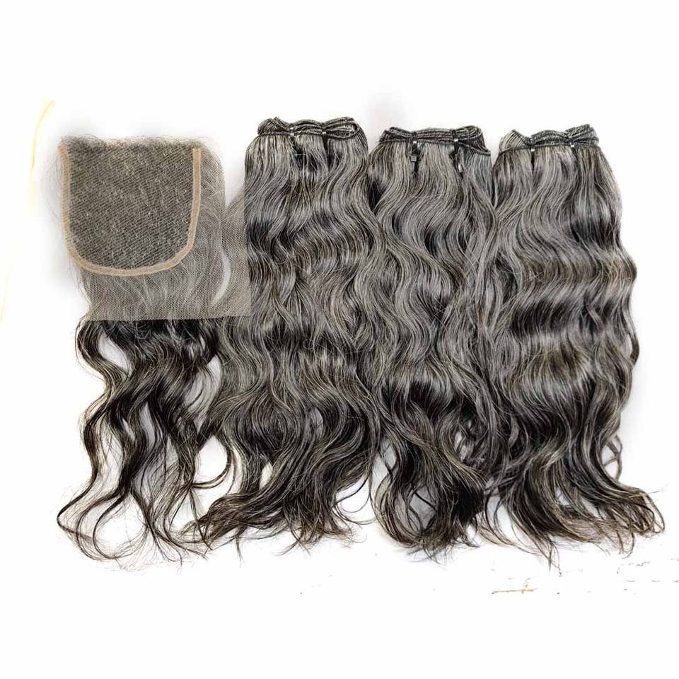 ผมต่อจากผมชาวอินเดียทั้งเกลือและพริกไทยผมเรมี่เกรย์บริสุทธิ์จาก100%