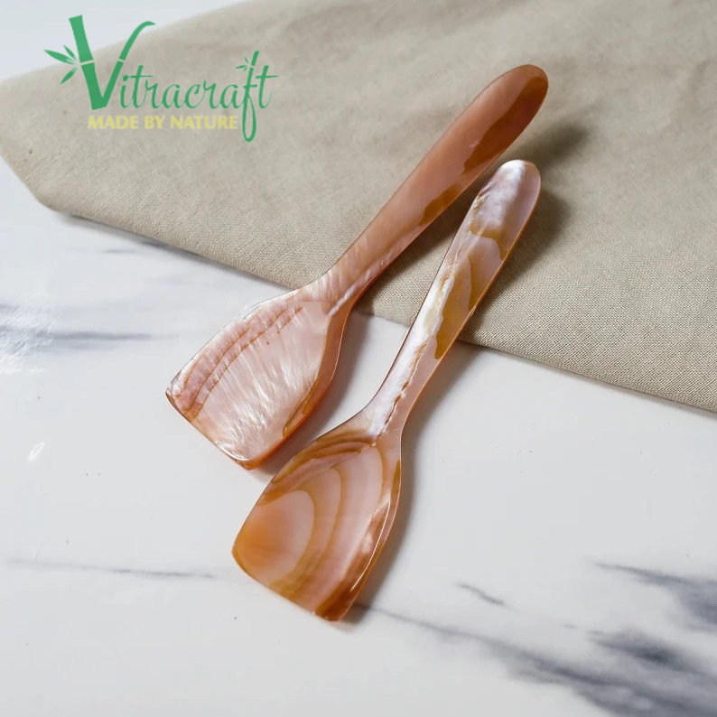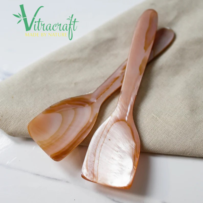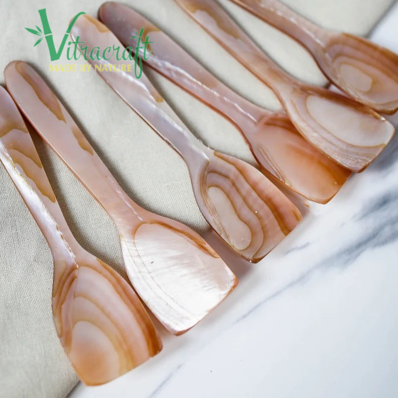 100% เวียดนามหัตถกรรมธรรมชาติสีชมพูแม่ของมุกช้อนช่วยรักษารสชาติเต็มรูปแบบของคาเวียร์ขนาด10.5ซม.