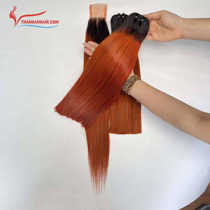 ช่อผมมนุษย์แบบชาวเวียดนาม100% สีส้มออมเบรช่อต่อผมชาวเวียดนามแบบดิบๆ