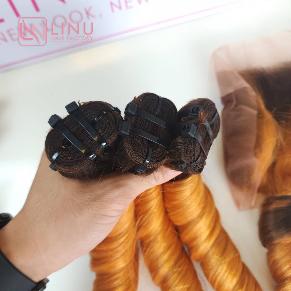 ผมแท้เวียดนาม 100% แบบ SDD ลอนสีเหลือง พร้อมเชือกปิดผม ราคาขายส่ง