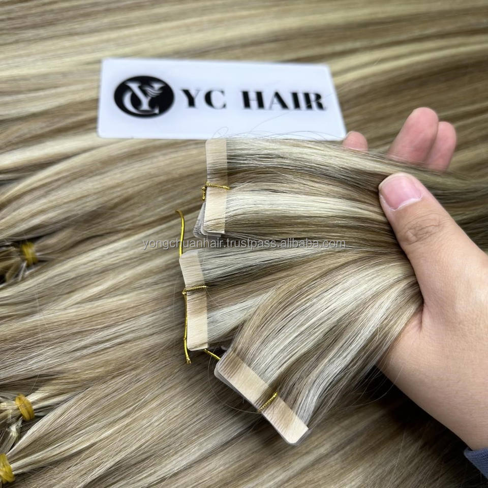เทปเรมี่เครื่องยืดผมแท้100% สำหรับต่อหนังแท้ติดหนังกำพร้าผ้าสองชั้นสไตล์คลื่นธรรมชาติ
