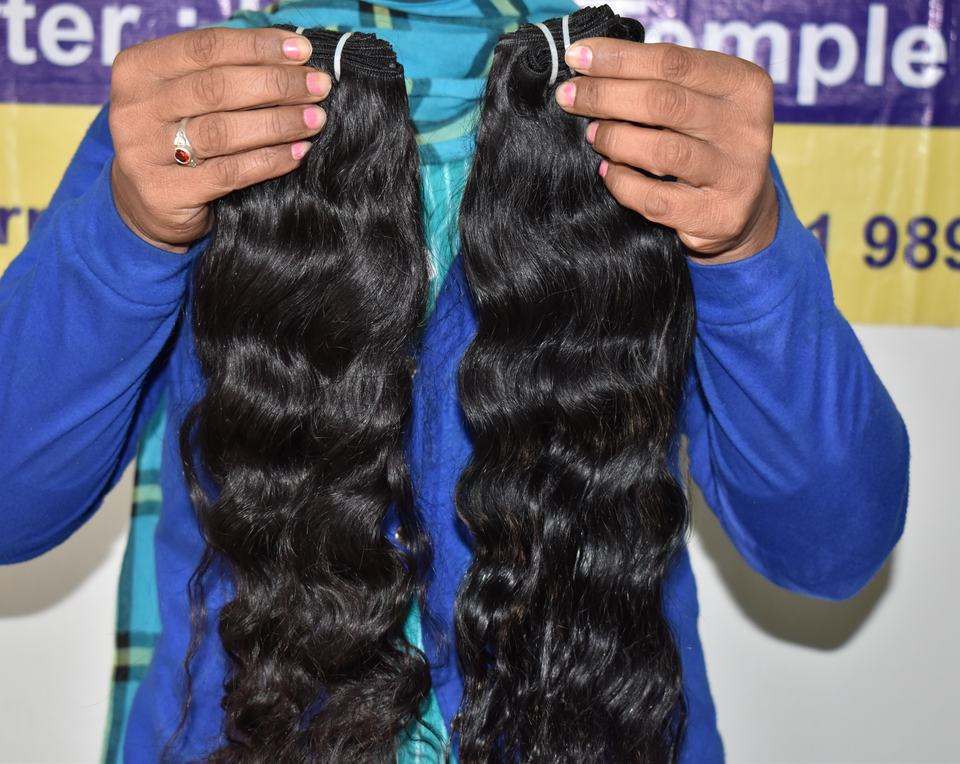 ผมต่ออินเดียแท้ 100% แบบดิบ ไม่ผ่านกระบวนการใดๆ ราคาถูก ผมธรรมชาติแบบลอนลึก เงางามเป็นลอน แบบมัด คุณภาพเกรด Remy น้ำหนัก 100 กรัม