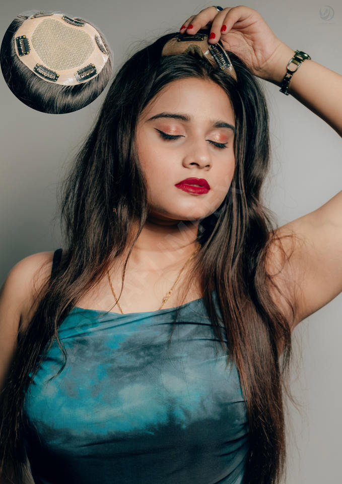 วิกผมชาวอินเดียแบบ100% วิคผมปลอมยาวสองชั้นผ้าไหมสีน้ำตาลดำดำธรรมชาติ