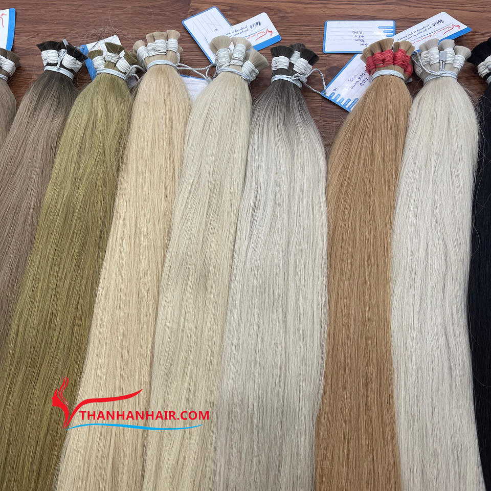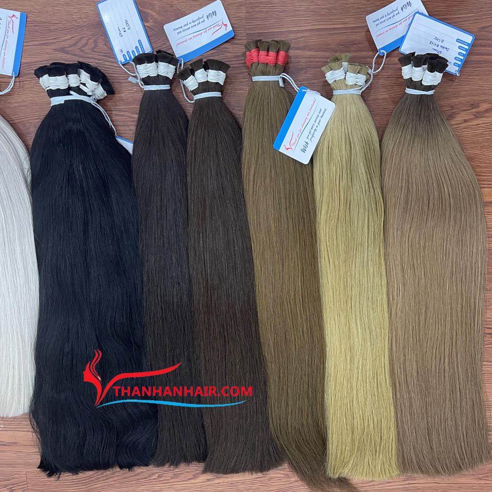 ผมต่อเวียดนามแท้ 100% เนื้อนุ่มดุจแพรไหม สีสวยหลากหลาย แบบยกมัด คัดสรรอย่างพิถีพิถัน ลอนยาวสไตล์ Thanh an Hair น้ำหนัก 100 กรัม