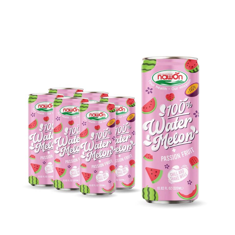 เครื่องดื่มแตงโม100% พร้อมน้ำเสาวรสสามารถ320มล. (10.82ลอย) ตัวอย่างฟรีเครื่องดื่มขายส่งในเวียดนาม OEM MOQ ต่ำ