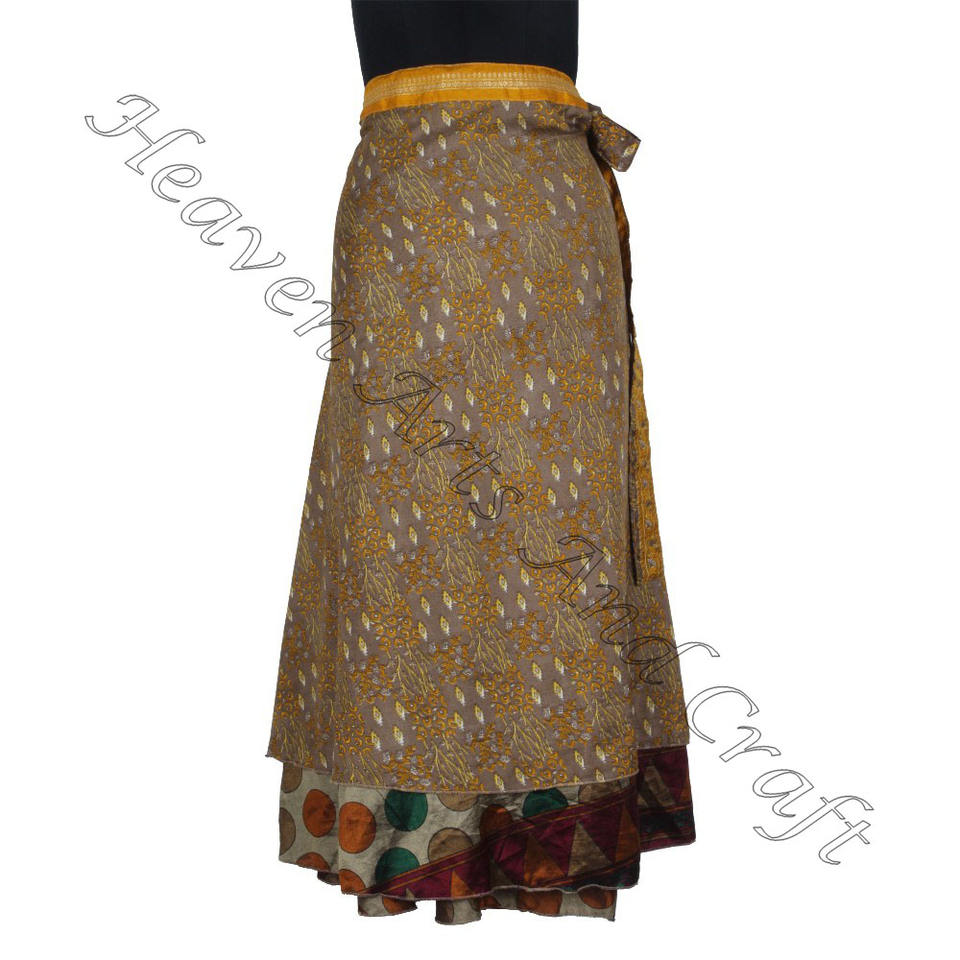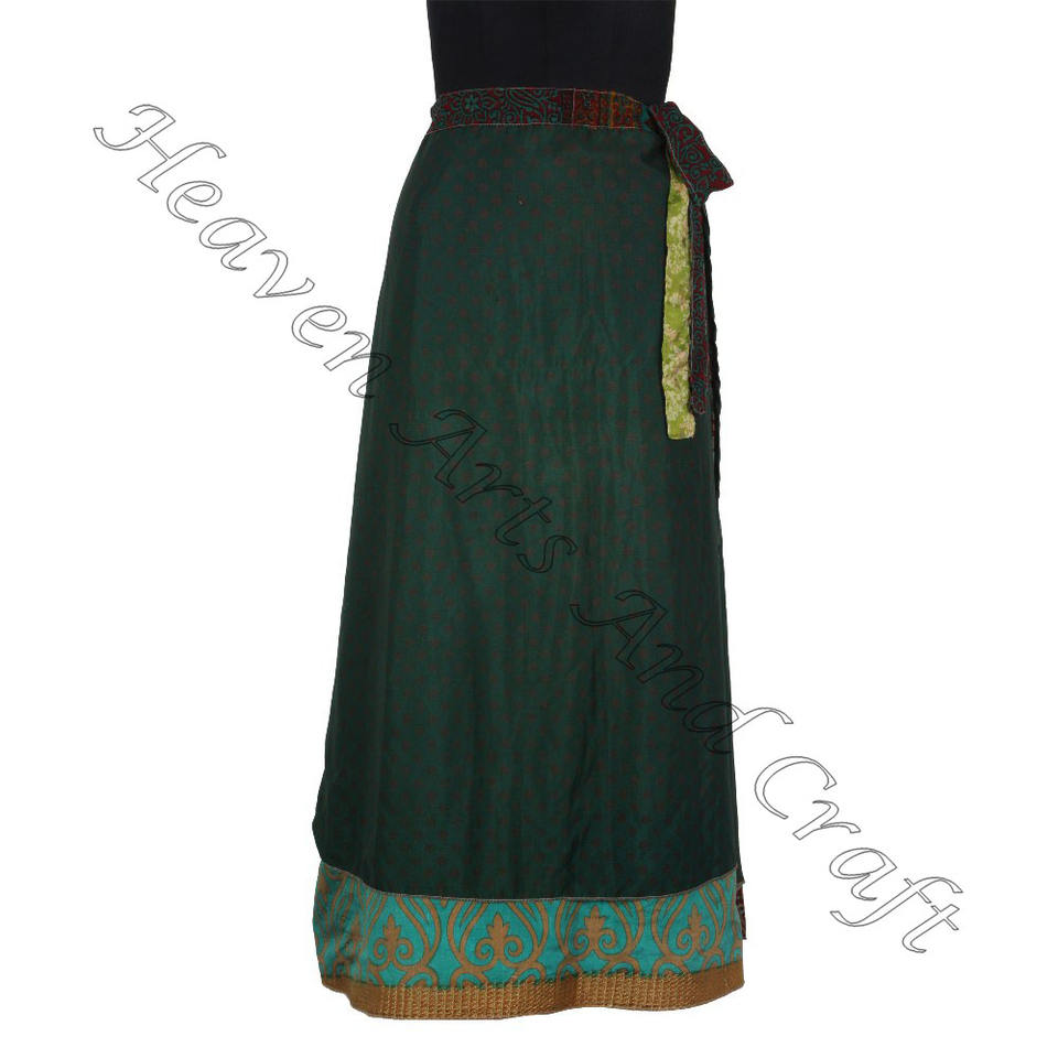 100วิธีในการสวมใส่กระโปรงห่อวิเศษวินเทจผ้าไหมอินเดีย38นิ้วใหม่2ชั้นผ้าไหมวิเศษกลับด้านได้กระโปรงยาวผ้าส่าหรี