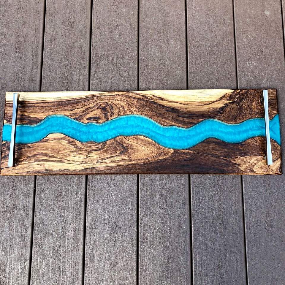 100% ขายส่ง Diy อีพ็อกซี่เรซิ่นแม่น้ำและมะม่วงไม้ที่ให้บริการถาดที่มีมือจับโลหะโรงแรมและร้านอาหารเครื่องครัวใช้