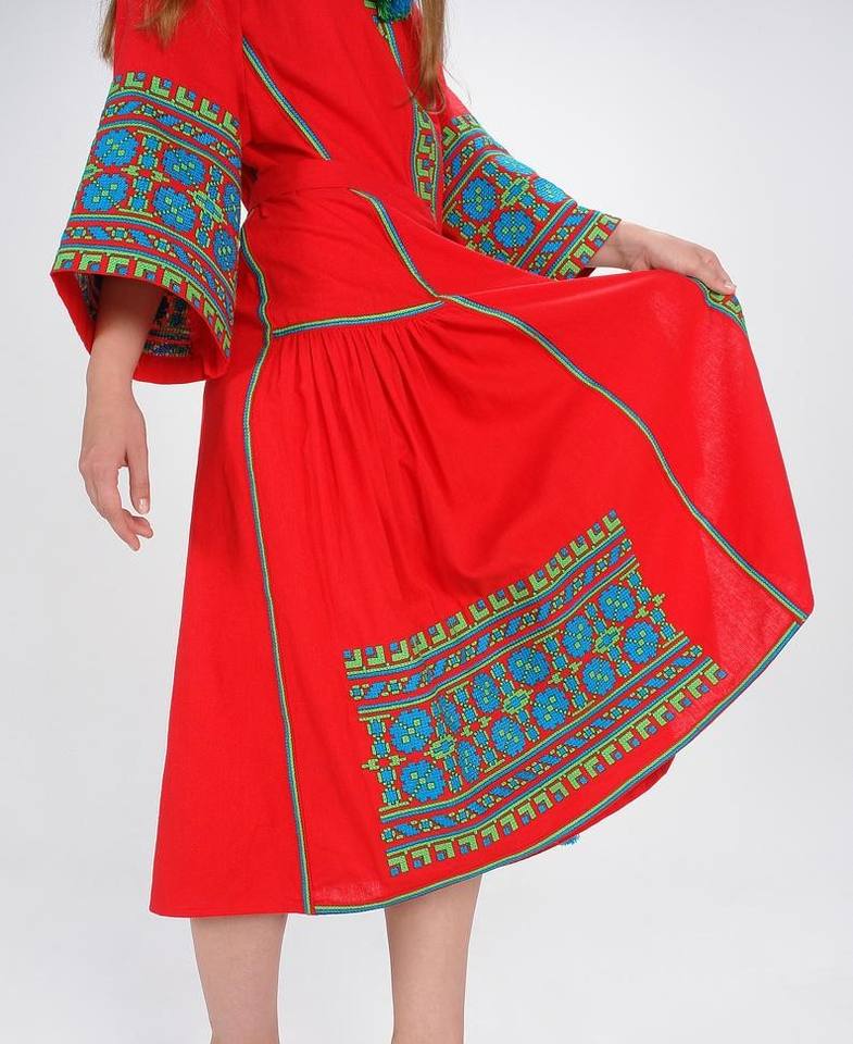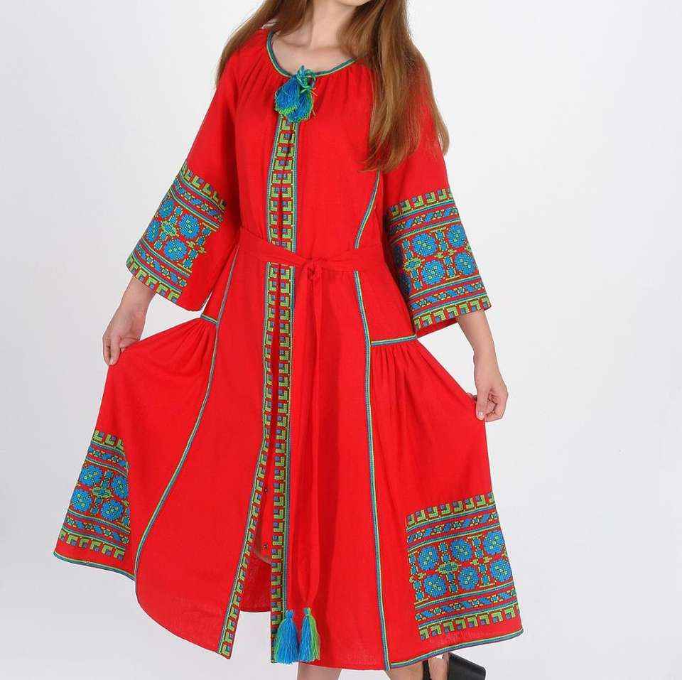 100% ขายส่งราคาวินเทจปักแขนเต็มกับพู่และเข็มขัดยูเครนชุด Maxi ยาวสีแดงผู้หญิงชุดราตรี