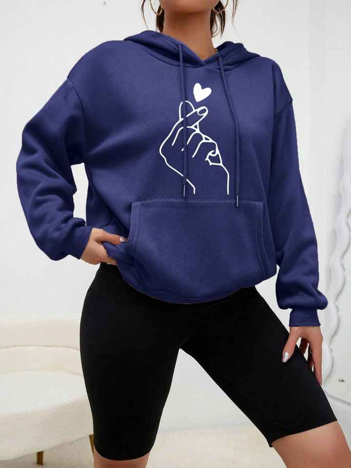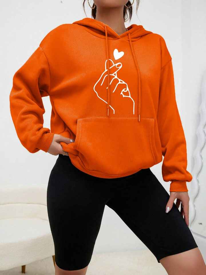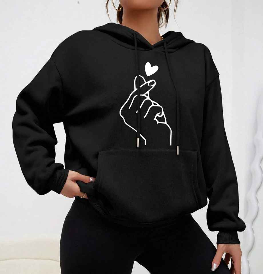 เสื้อฮู้ดผ้าฟลีซผ้าฝ้าย100% มีฮู้ดแขนยาวพิมพ์ลายหัวใจด้วยมือแบบเรียบ