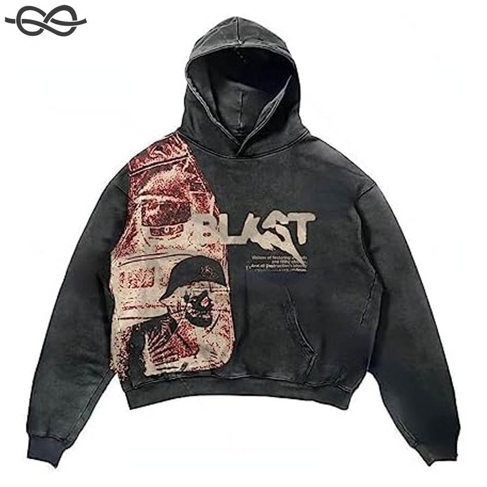 เสื้อมีฮู้ดผ้าฝ้าย100% Y 2K ดีไซเนอร์วินเทจเฮฟวี่เวทมีฮู้ดผ้าซีดจางออกแบบได้ตามต้องการ500มีกรด GSM