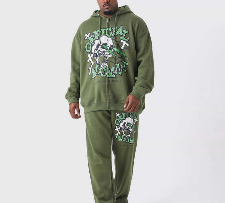 ชุดวอร์มผ้าฝ้าย 100% ชุดจ็อกกิ้งผู้ชาย เสื้อฮู้ดและกางเกงขายาวทรงบาน ชุดแทรคสูทปักลายขาดๆ ผ้าปะติดปักลาย