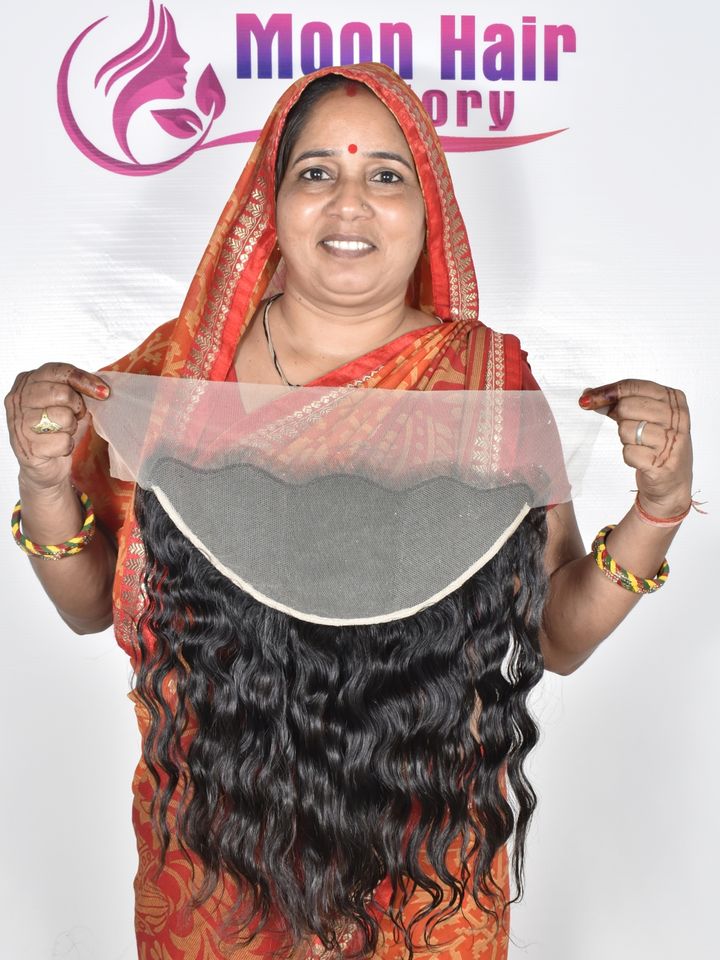 100% ผมมนุษย์หยักศกด้านหน้าของมนุษย์เนื้อนุ่มสลวยยาวแบบอินเดียสำหรับการส่งออก