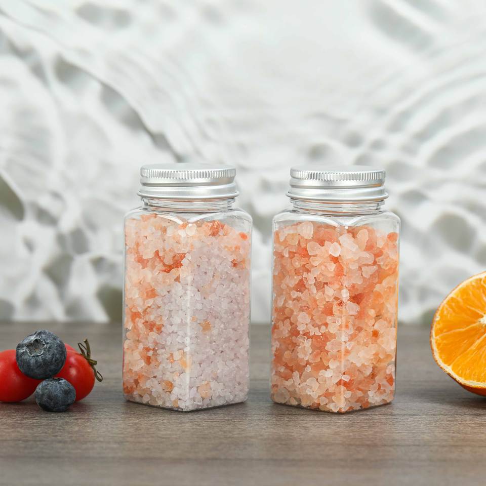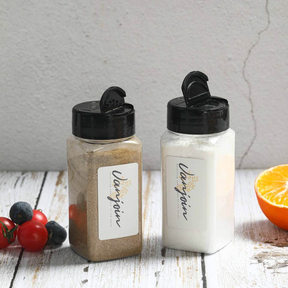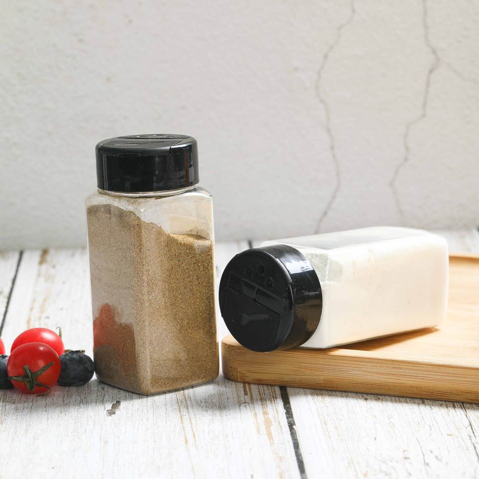 ขวดเครื่องเทศพลาสติกทรงสี่เหลี่ยมขนาด100มล. พร้อมฝาพับทรงผีเสื้อสีดำพริกไทยเกลือพริก