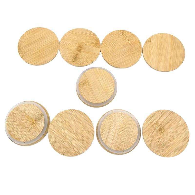 ฝาปิดไม้ไผ่ทรงกลมแบบกำหนดเอง 100% ธรรมชาติ สำหรับขวดแก้วใส่เทียนพร้อมวงแหวนซิลิโคน ขวดเครื่องเทศธรรมชาติพร้อมฝาไม้ไผ่