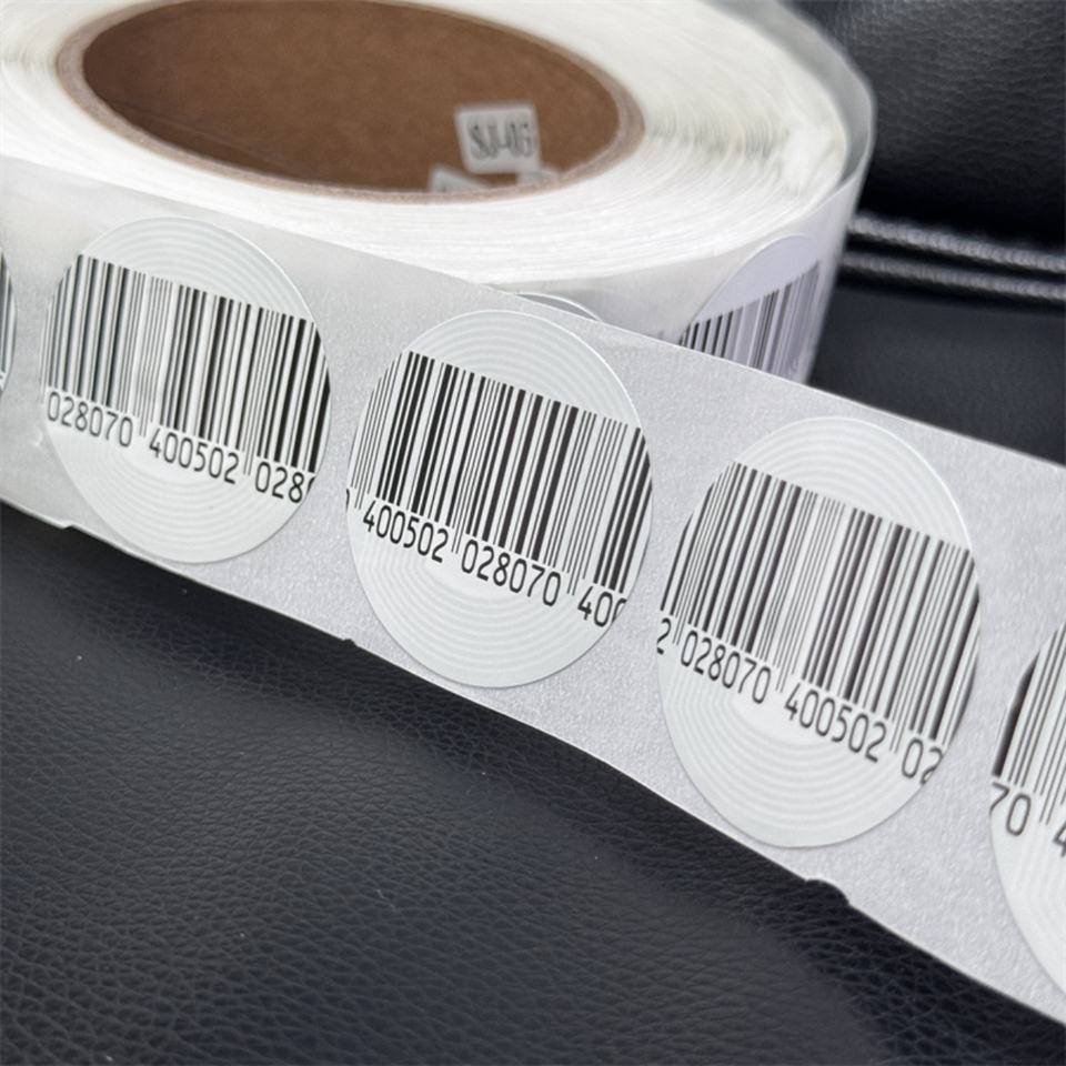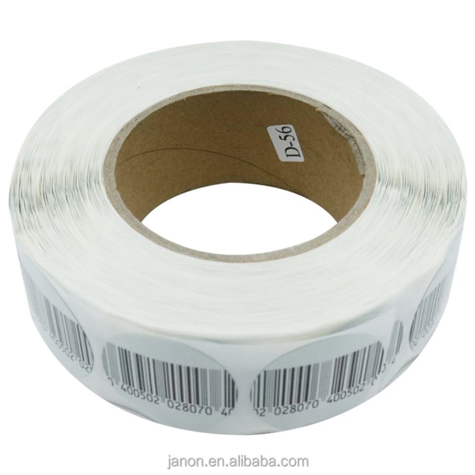 1000 ชิ้น เส้นผ่านศูนย์กลาง 40 มม. EAS RF 82MHz สติกเกอร์นิรภัยแบบนิ่มสำหรับร้านขายยา พร้อมบาร์โค้ดสำหรับกล่องป้องกันการโจรกรรม