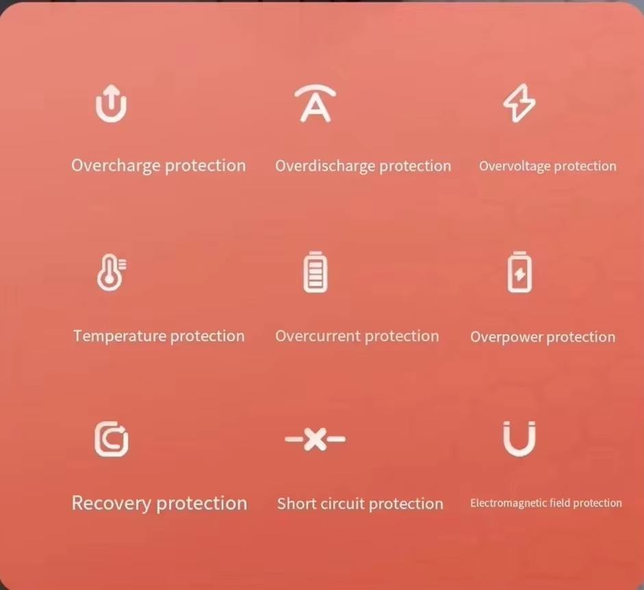 การป้องกัน:การคายประจุเกิน, การป้องกันไฟฟ้าลัดวงจร, การชาร์จไฟเกิน