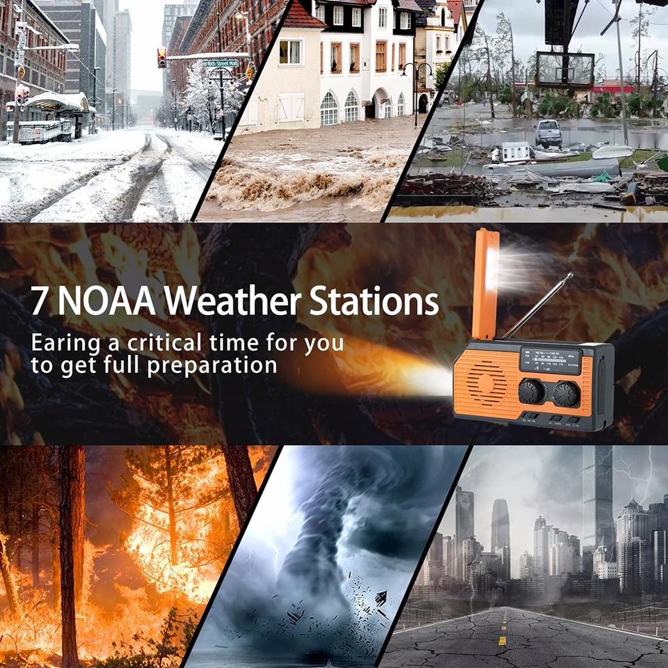 พาวเวอร์แบงค์ 10000mAh วิทยุมัลติฟังก์ชั่น พร้อมมือหมุนชาร์จพลังงานแสงอาทิตย์ ชาร์จผ่าน USB วิทยุ FM AM WB NOAA วิทยุพยากรณ์อากาศ ไฟฉาย LED ฉุกเฉิน